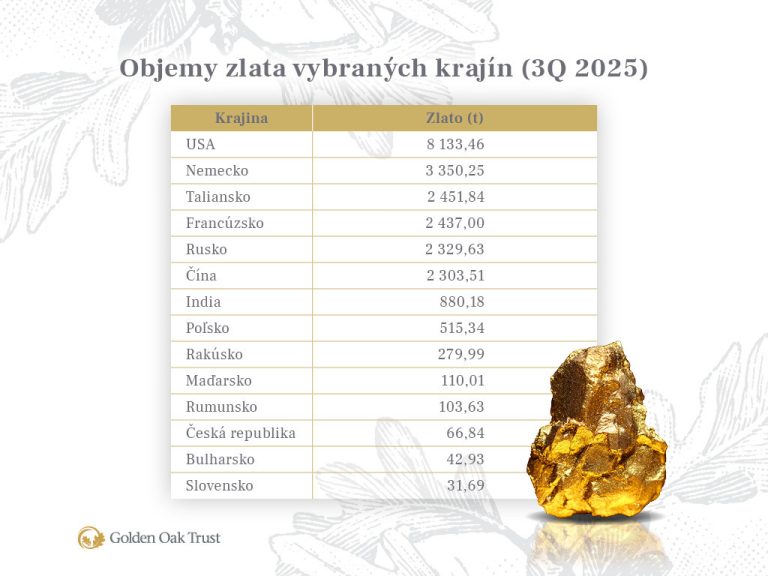 - Očakávané znižovanie úrokových sadzieb. Zlato ťaží aj z predpokladu, že úrokové sadzby budú naďalej klesať. Nižšie sadzby totiž znižujú náklady na držbu neúročených aktív, čím rastie ich atraktivita v porovnaní s dlhopismi či vkladmi.
